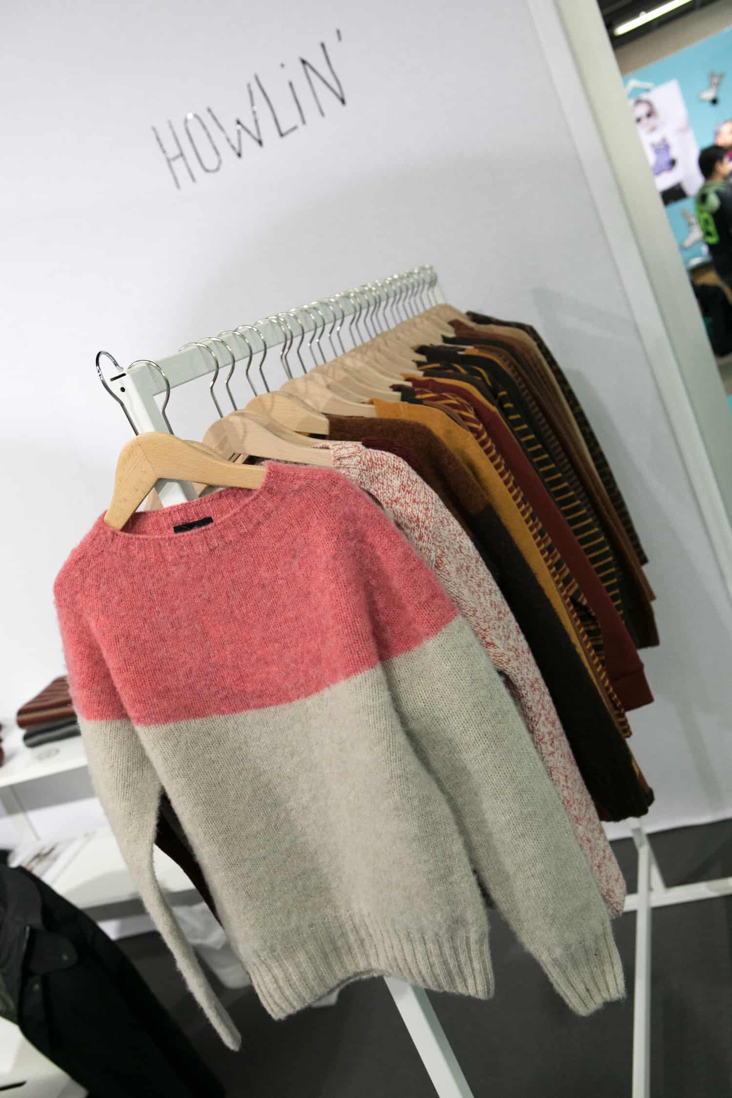 Howlin Belgian knitwear label had two rails, one larger rail all produced in Scotland and another smaller rail produced in Belgium. This label represents brilliant classic design with a twist, with the micro-terry loopback (middle image) printed to achieve the colour. We loved the yoke curve on the two tone jumper (see far right image). It’s always nice to see clever subtle elements of design i.e throw in a slight curve. This is a wearable unisex collection for kids diffused from the adult collection and it’s really cool to boot.