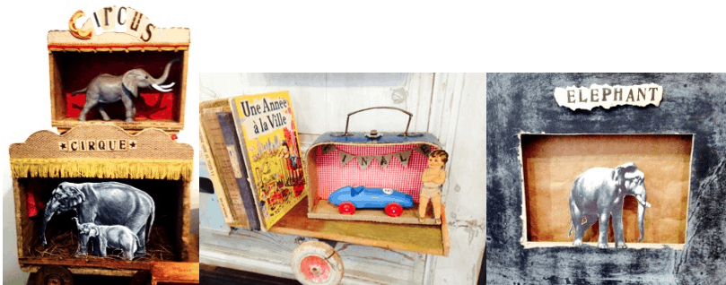 Tdm (France) : little “scenettes” created from vintage pieces with fantastic attention to details. Available at Molly-Meg (online, UK).