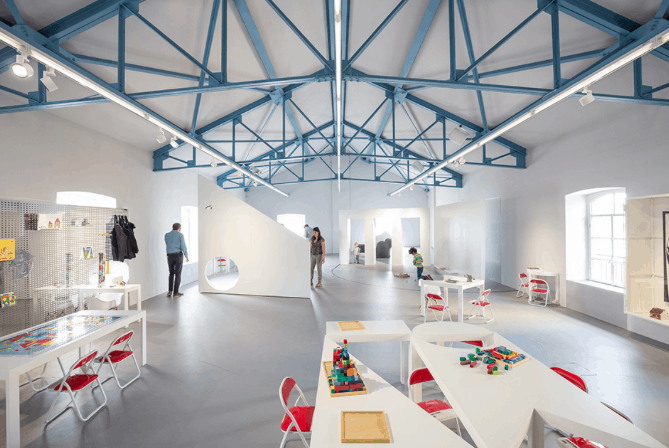 The Accademia dei Bambini is Fondazione Prada’s first project specifically created for children, and was developed by the neuropediatrician Giannetta Ottilia Latis, who laid the theoretical and operational groundwork. The architectural layout of the space was entrusted to a group of young students from the École nationale supérieure d’architecture de Versailles, led by their teachers Cédric Libert and Elias Guenon.