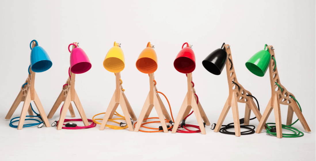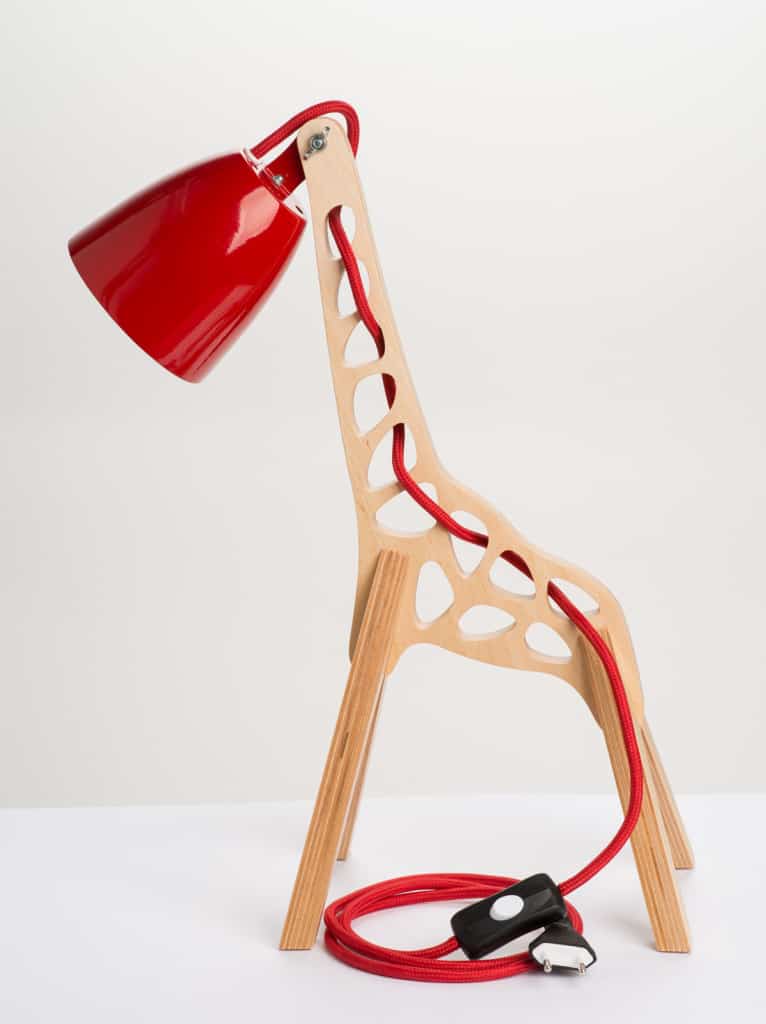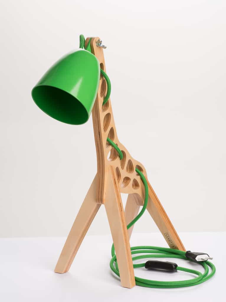 The table lamp version, Giffy 17.7”, is 45 cm high, 17 cm wide and 34 cm long. It´s body and legs are made of 18 mm thick birch plywood and the lamp works with a single GU10 LED bulb with a maximum wattage of 8W.