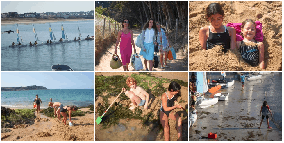 With Tristan and Heloise we surfed & body surfed. Paloma went every morning to a sailing school. We went to many beaches and water was not as cold as expected but aqua blue and lovely. The sand in high tides is perfect for building projects & the team gets to be efficient fast clever to try to prevent the returning waves. Even parents have to help carry rocks, dig deeper etc…I love seeing them immersed in fantasy projects just with sand and shells and rocks for hours.