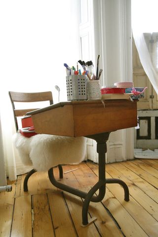 The loft of Sophie Demenge and Michael Ryan’s has been featured in quite a few magazines. You might remember the swing in the living area, the slide in the kid’s room and the collection of vintage object, including wooden school desks and class maps. Founders of the brand Oeuf, Sophie and Michael live in Brooklyn with Mae (10) and Marius (8). Happy in their lively neighbourhood, that allows them to walk to work and to walk to school.