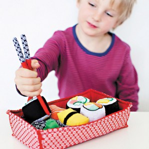 Pretend play sets naturally bring children together. They role play, interact, learn to stretch their imagination and develop habits for sharing and compromise. This fabric sushi set is a fantastic contemporary alternative to traditional themes.