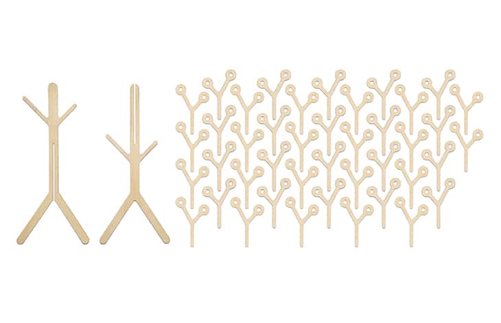 Oliver says that when he was a child, he loved building huts by accumulating branches, leaves and other plants. This construction method is the starting point of Yo which revisits assembling game in a simple and fun way. Inspired by plant forms, Yo consists of a main body (trunk of a tree) on which we put additional modules (leaves). Its intuitive and modular shape leads us to experiment and create a light, balanced structure, and generates new stories and adventures in our mind.